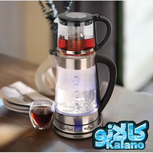 چای ساز ویداس شیشه ای روهمی سفید ومشکی مدل 2079