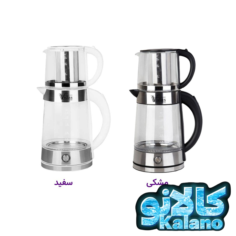 چای ساز ویداس شیشه ای روهمی سفید ومشکی مدل 2079