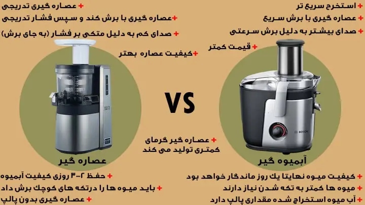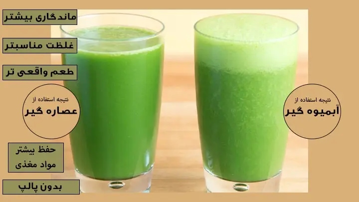 لیست همه تفاوت های عصاره گیر و آب میوه گیر: