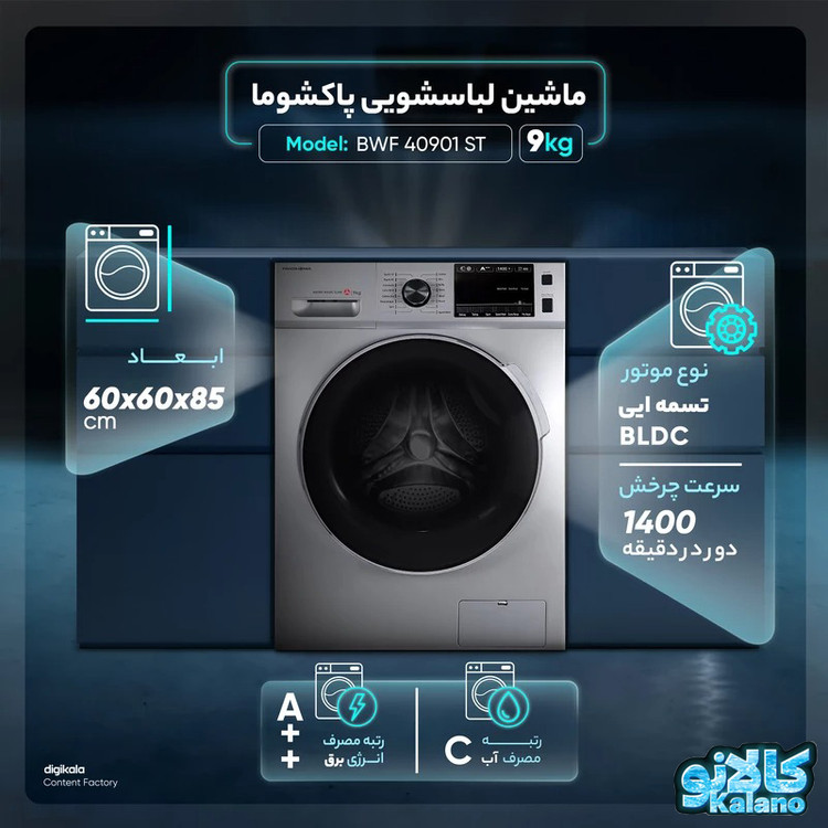 ماشین لباسشویی پاکشوما ظرفیت 9 کیلوگرم